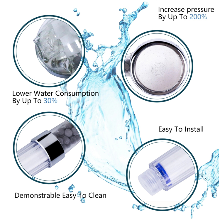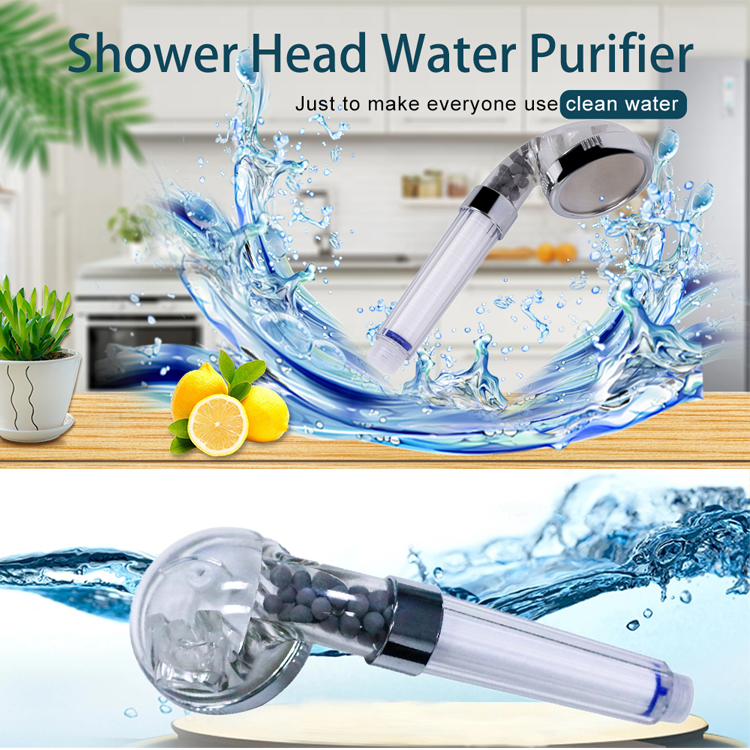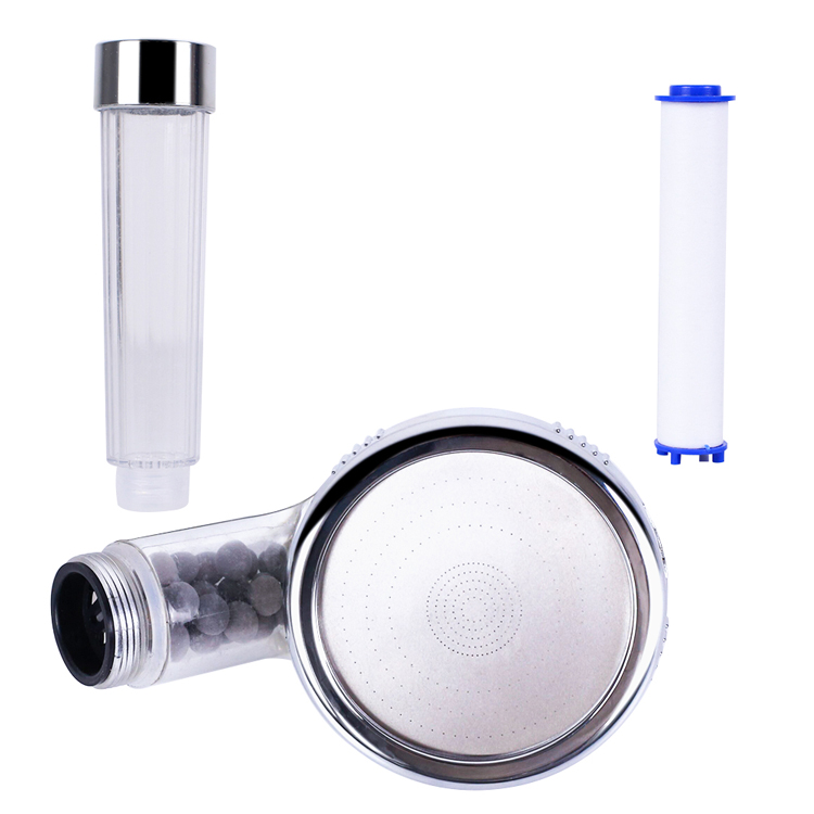 Bathroom Stainless Steel Hand Held Negative Mineral Ball Filter Water Saving Purifier Shower Head